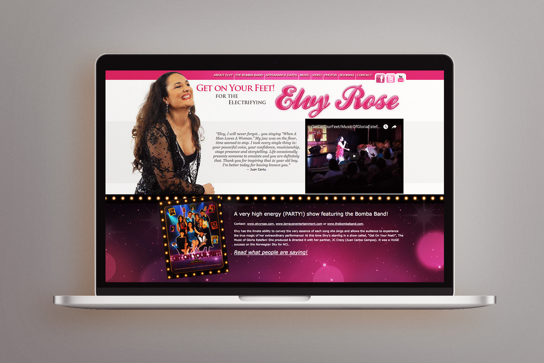 Website design for entertainer, Elvy Rose, to showcase performances, news and upcoming dates.